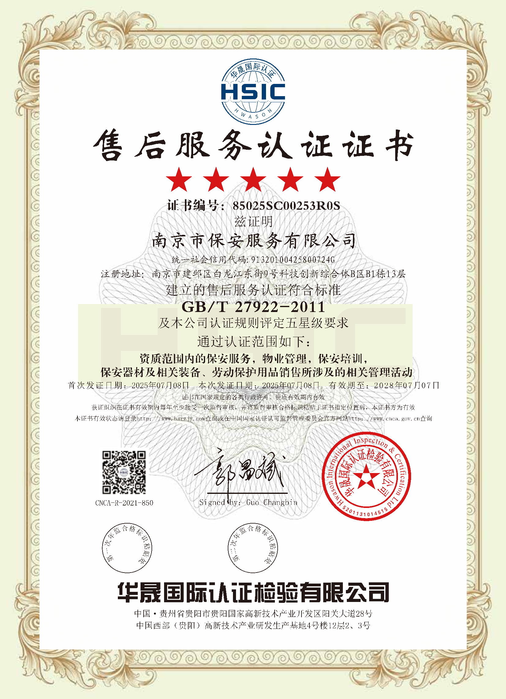 祝賀:南京市保安服務(wù)總公司通過(guò)企業(yè)誠(chéng)信管理體系認(rèn)證和企業(yè)社會(huì)責(zé)任管理體系認(rèn)證[07-16]